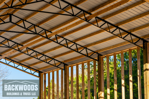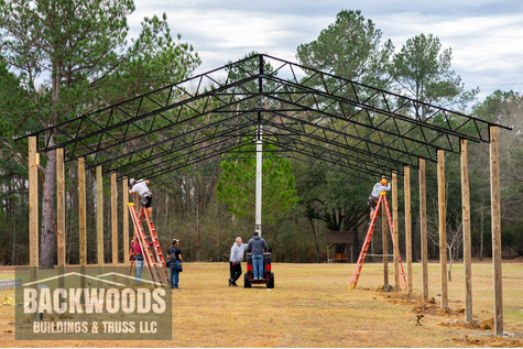 At Backwoods Buildings, we manufacture our own steel pole barn trusses, ensuring unmatched quality and consistency. Unlike mass-produced imports and light gauge tubular buildings, our trusses are welded with USA-sourced steel and built to handle the toughest conditions across Florida and the Southeast. With customizable roof pitches and engineered precision, our trusses give your pole barn the structural backbone it needs to stand the test of time.